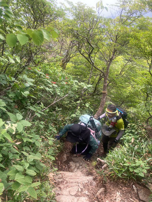 ラジオ体操後7.55分には登山口より登り始め流石に8時前とはいえ汗は出るし暑いねと言いながら頑張って桑瀬峠目指します。